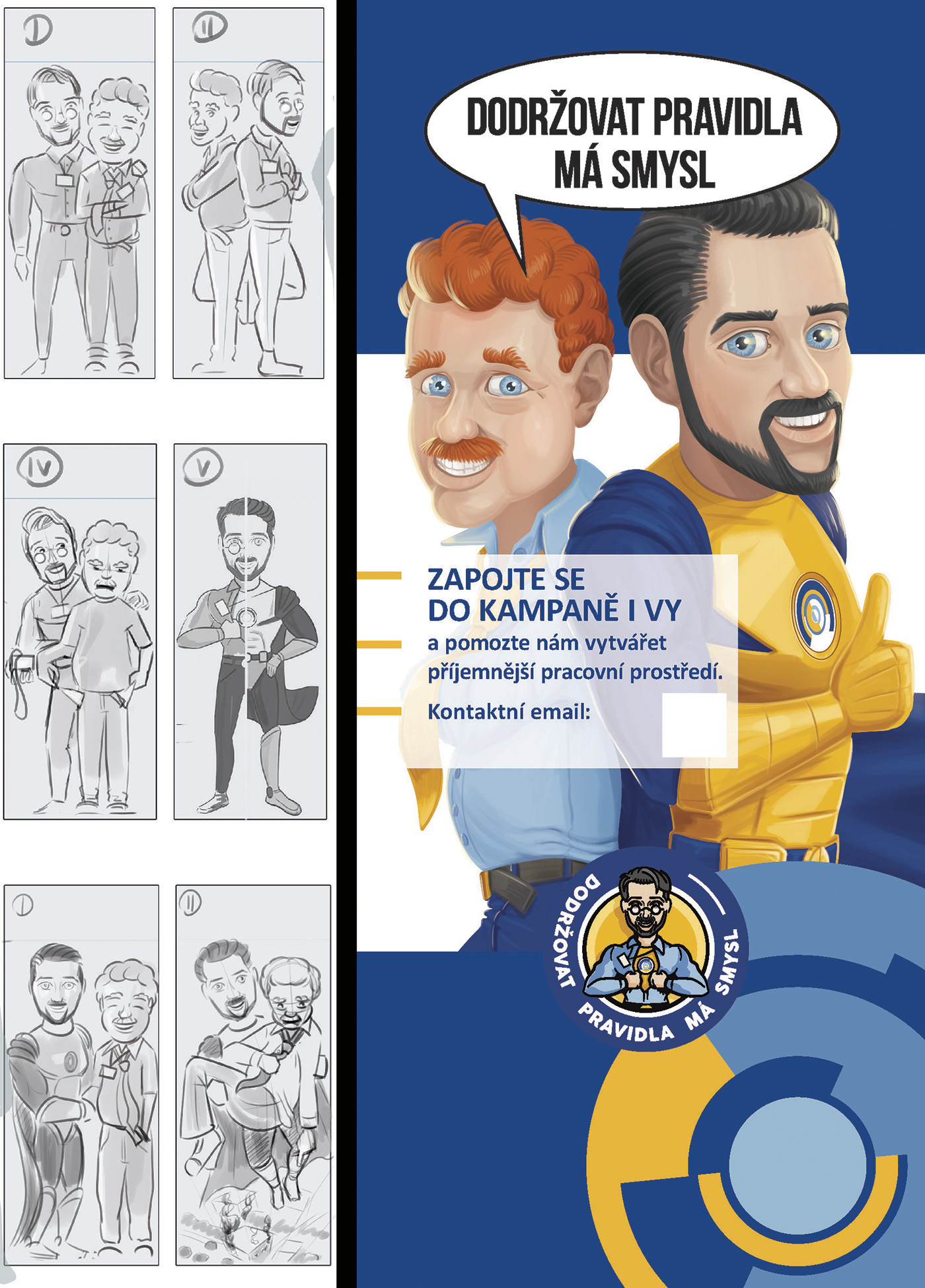 Vizuály s maskotem doprovází každé téma edukující zaměstnance na konkrétní téma.