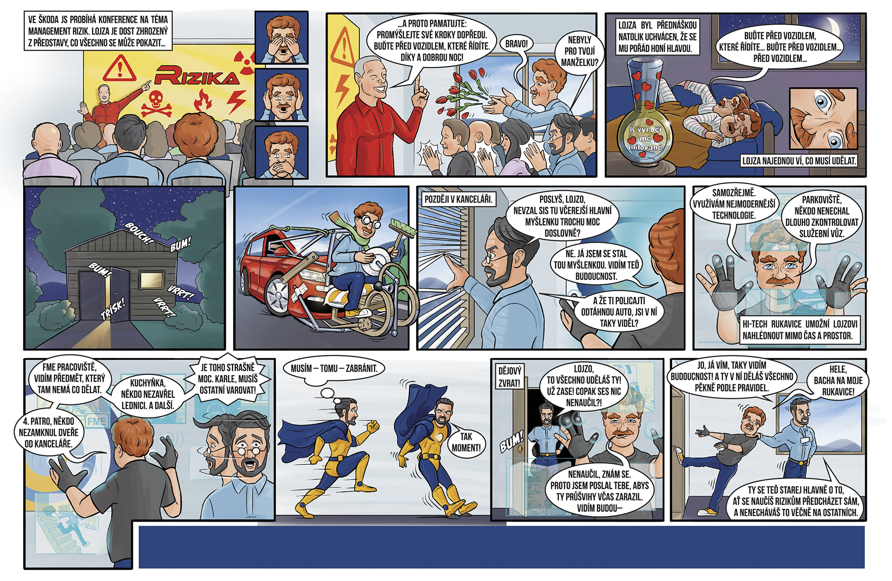 Pravidelný interní komiks pro edukaci zaměstnanců pro Škoda JS tvořen ve spolupráci s Red Fox Event.